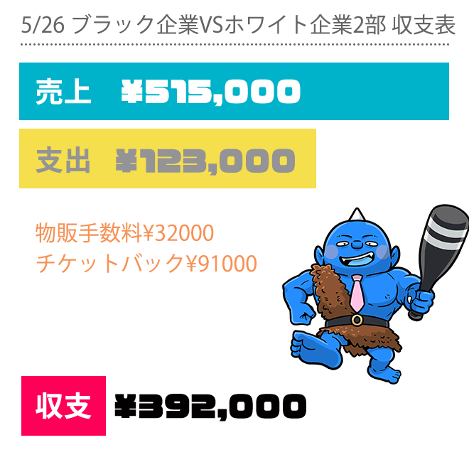 今回のイベントの会場費等は、1部の会社説明会で持っておりますので、2部には反映させておりません。そのため、過去最高クラスの黒字が出ました!これで少し、今までの赤字が取り返せました、、、、まだあと100万赤字あるけど、、、でも、今回は、光が見えたイベントとなりました!