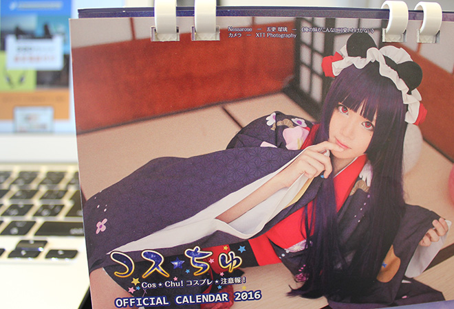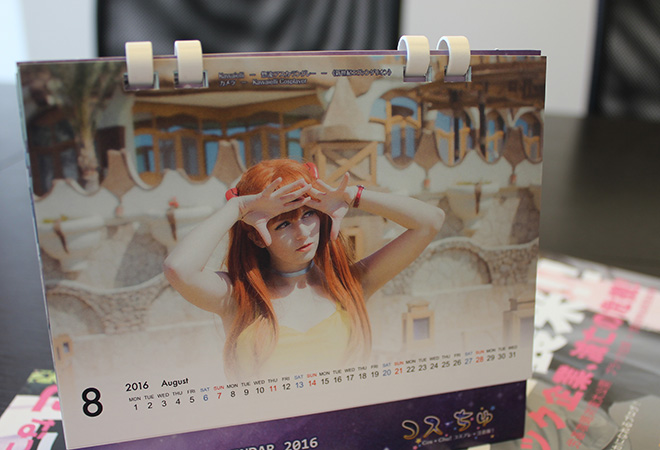 《コス★ちゅ!》の2016カレンダーは、公式ブログで登場したコスプレイヤーさんたちの写真をたくさん載せています!Vol. 08のMeiMeiさんやVol. 32のNessaroseさんをはじめ、大勢の人気コスプレイヤーが出演してくれました。インタービュー以外の形で続けて海外のコスプレ文化をプロモします。海外プロジェクトはまだメイン業務ではないので、予算が少なく大量印刷はできませんでした。