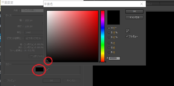 と選択し、色が調整できそうな箇所で真っ黒な色に調整をしてOKします。