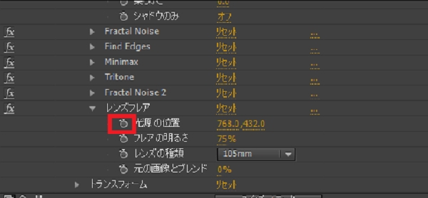 「光源の位置」の左に見えるストップウォッチみたいなアイコンをクリックします。