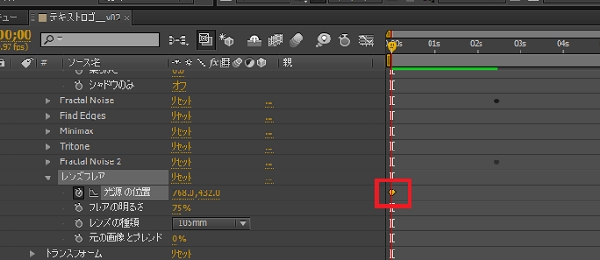 開始位置のタイマーの黄色い数値を戻してから、今度は「光源の位置」の左のストップウォッチアイコンを押します。