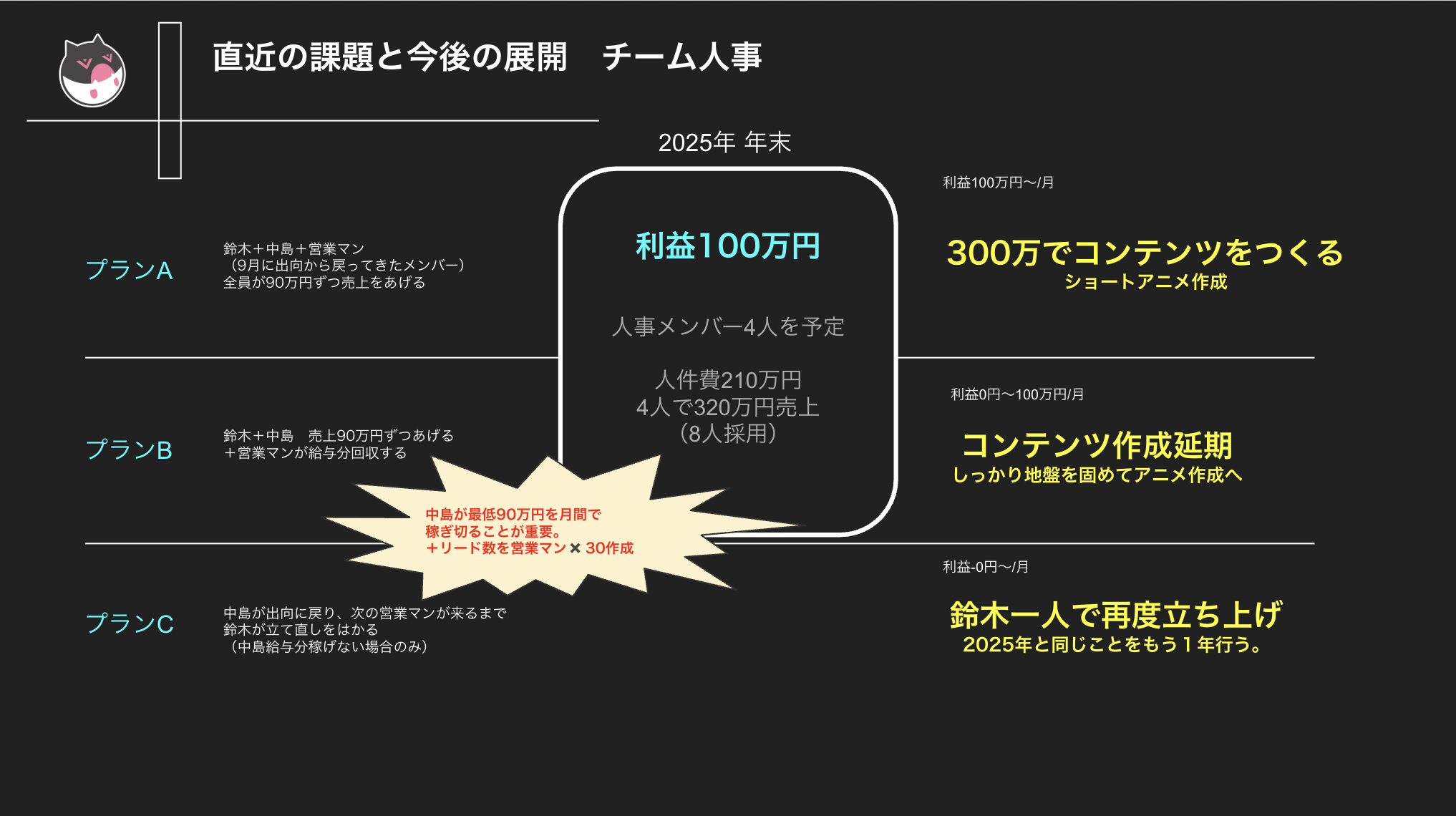 今までなんとなくで理解していましたが、事業計画でさえプランA〜プランCまで作成することで、最悪の状況が見えてきます。