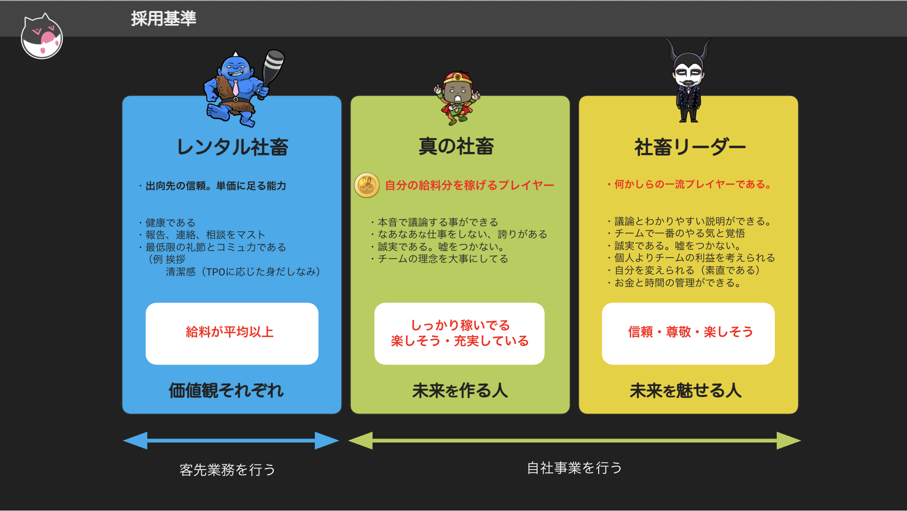 基本採用面談で行うのは、真の社畜の採用面談を行います。