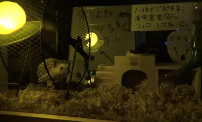 以前から邪魔なだけだといわれ続けていた回し車を初めて使ったポチ子社員。