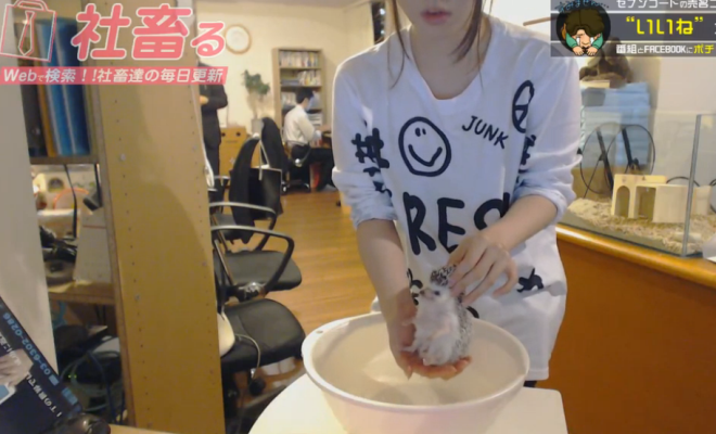 みちゃきちゃんが帰り、ひとりで水槽掃除をはじめる社長。