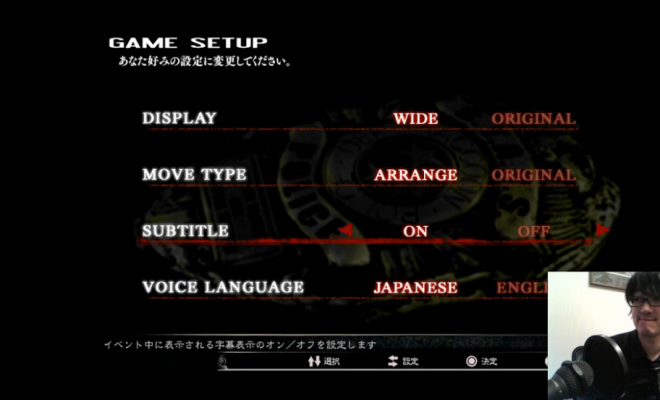 まずは始めにひびっきーがバイオハザードをテストプレイ。昨日はゲーム画面が紙芝居状態でしたが本日はゲーム画面もワイプも両方バッチリでした。