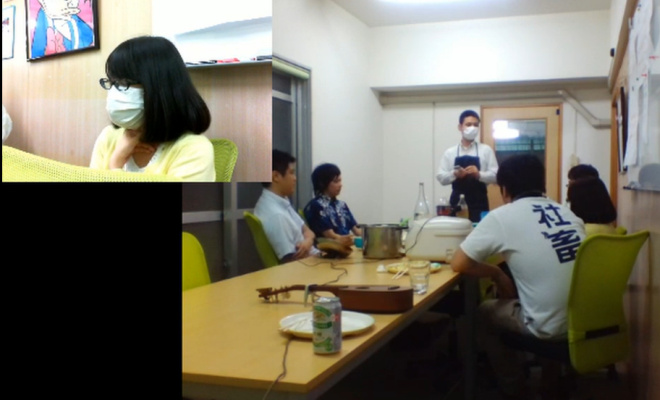 今回は緒方さんが沖縄に出張中だったのですが、なんと緒方さんだけSkypeを使ってのワイプ参加という遠隔ミーティングが行われようとしていました!
