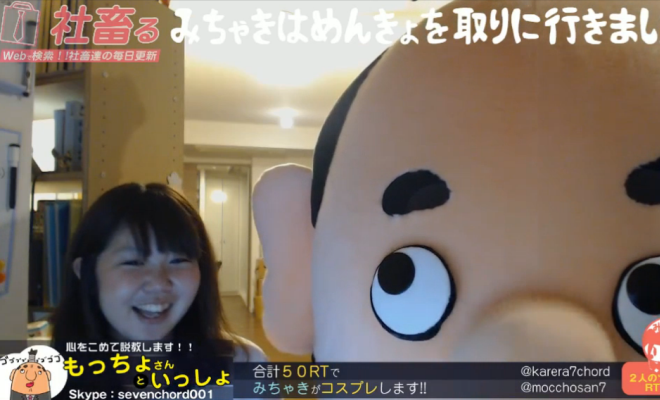 Skype凸する毎に凸ポイントがたまり、5凸ポイントが貯まると緒方さんの特製コラ画像をプレゼントしてもらえるそうです!