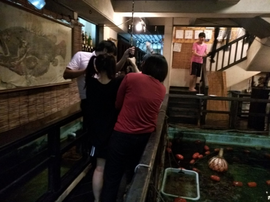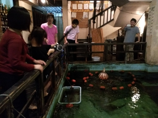 なんと、お店の中に生け簀があり釣りをすることが出来る凄いお店!