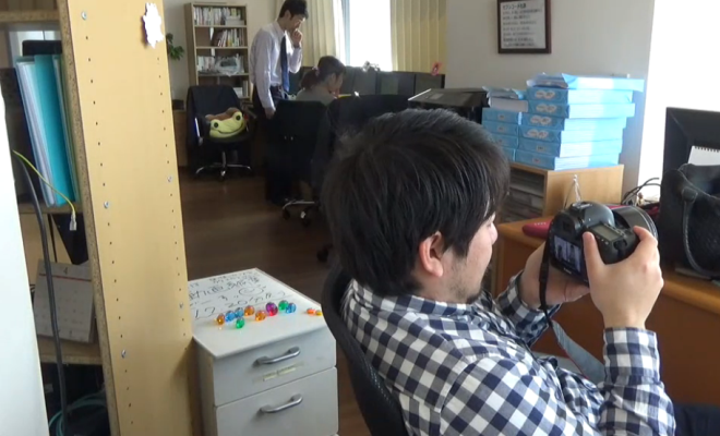 気に入らなかったのか、社長にメガネを借りて付けてみたりと、いろいろ悪戦苦闘。