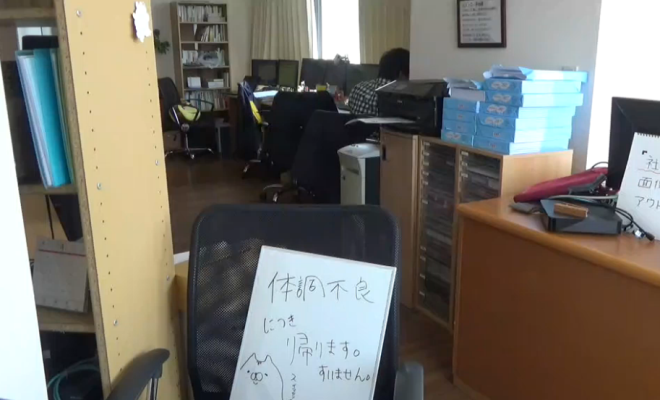 二画面用に購入したみちゃきちゃんの新しいパソコンが届いたため、みちゃきちゃんと社長が食事に行っている間にパソコンの入れ替え作業を始めた緒方さん。しかしながら、机の周りから出てくるは出てくるは…いろんなあれやそれこれ…