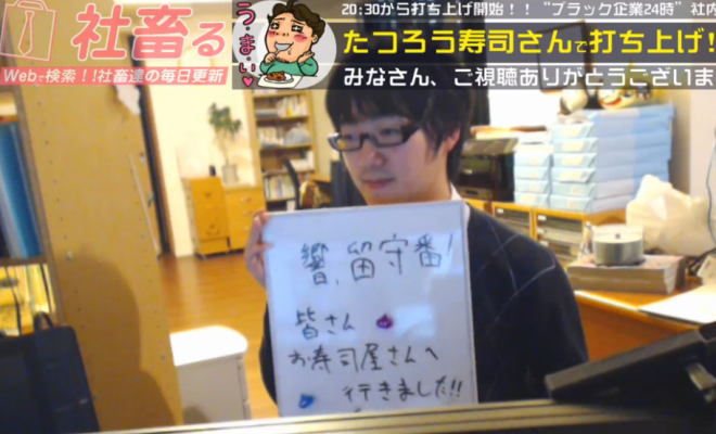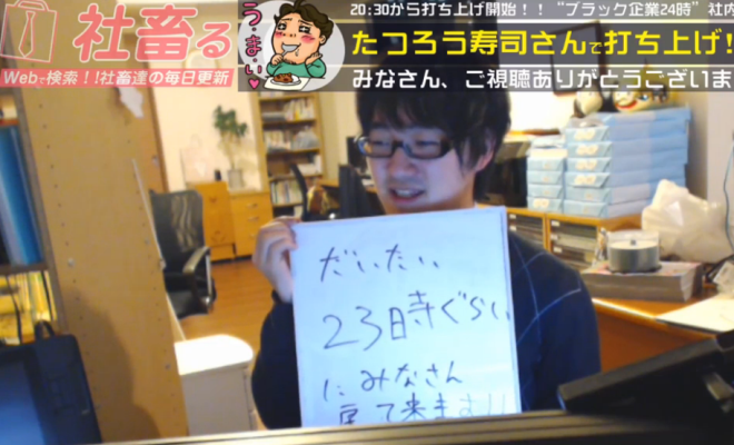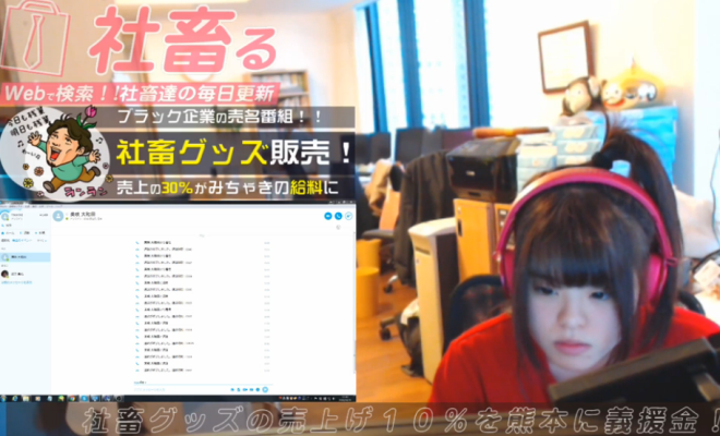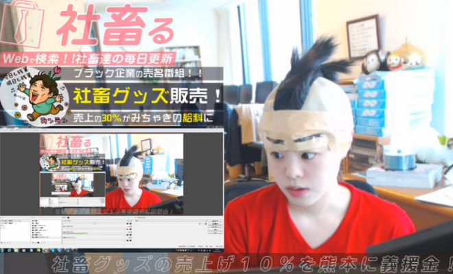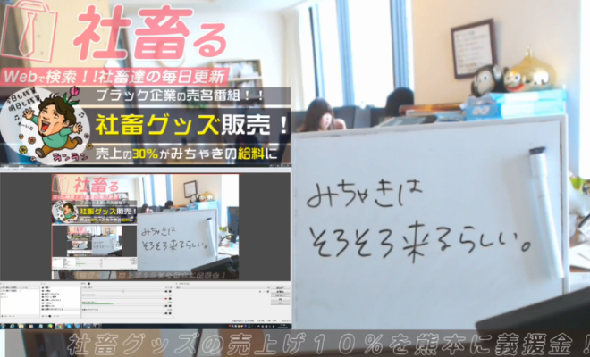 以前、生放送内で社畜ニュースをはじめると話していた社長。事前にどんなニュースをやって欲しいかなどなど生放送内で視聴者に募集していましたが、今回はその集めたもののいくつかをテーマに社畜ニュースの撮影をしていたようです。