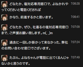 それで生放送が続くのならば…!と勇気を出し「塩対応」という文字にドキドキしながら実際に電話を掛けてみたのですが、「お問い合わせありがとうございますで塩~!」という語尾がすべて「~~塩」な、まさに塩対応な電話窓口で、とてもおもしろかったです 笑