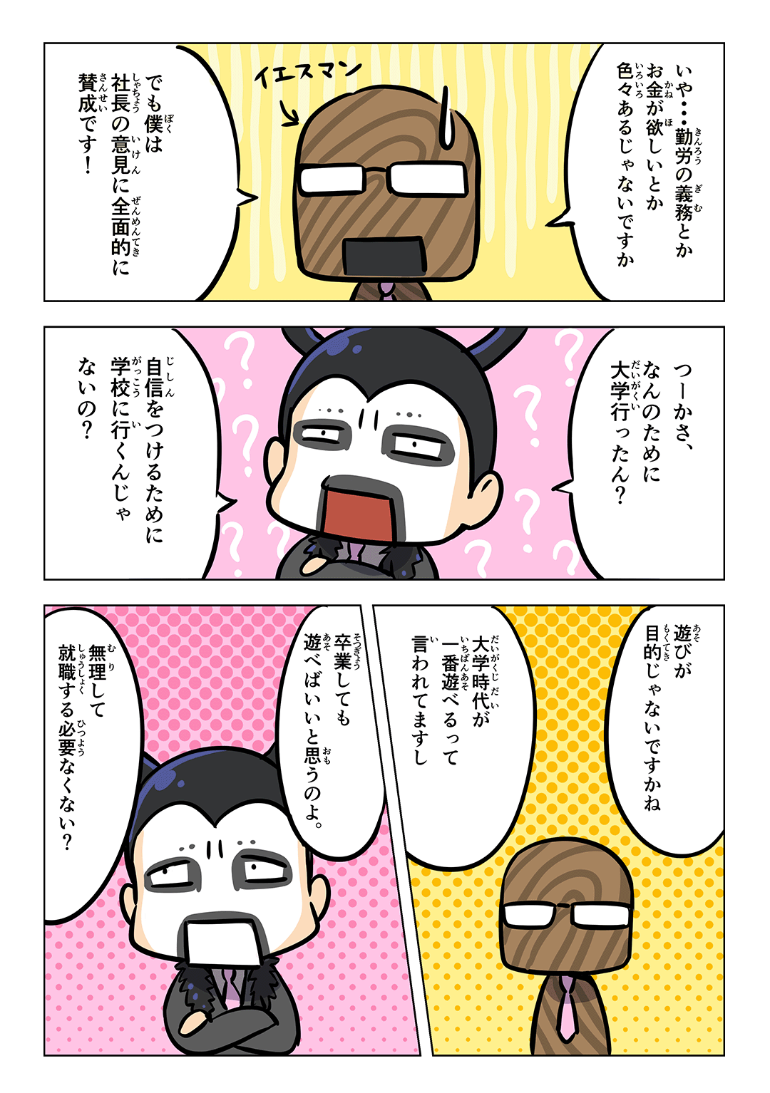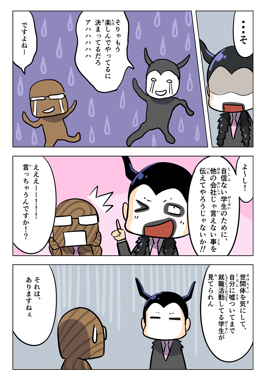 自分自信の事を知らないのに、就職してがんばる!って言ってもガンバレないと思うんです。 だって、仕事って楽じゃないもの。 就職は、今、ホントにするべき事なんだろうか。 今一度自分を見直して前に進むキカッケになればいいなぁとブラック企業の当社は思ってます。