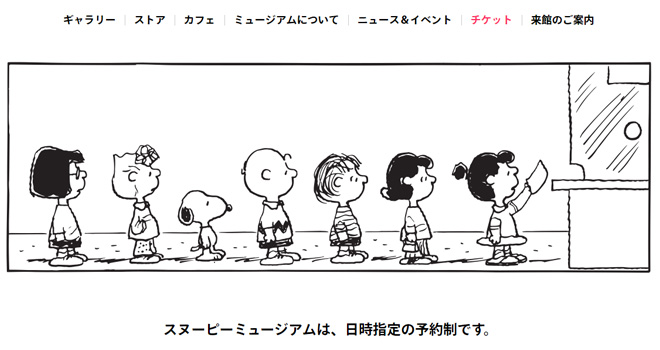 チケット情報のページに、チケットを買うため並ぶスヌーピーたちがいるところが特に好きです。