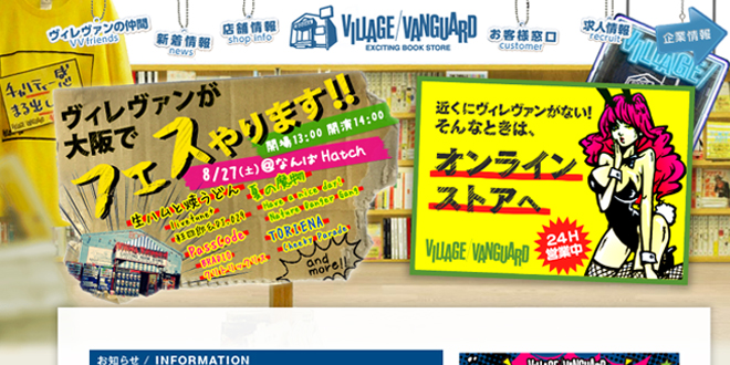 というわけで、今回はヴィレッジヴァンガードのホームページをご紹介します!