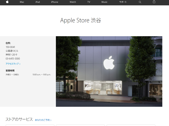 今回掲載させていただいた「Apple Store 渋谷店」のホームページですが、住所や営業時間、アクセスマップは勿論のこと、