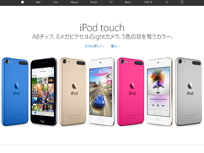 しかしながら、iPodのページ(http://www.apple.com/jp/ipod/)ではカラフルなiPod本体の写真が多く掲載されており、