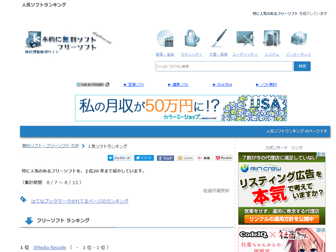 人気ソフトランキング – 基本的に無料ソフト・フリーソフト