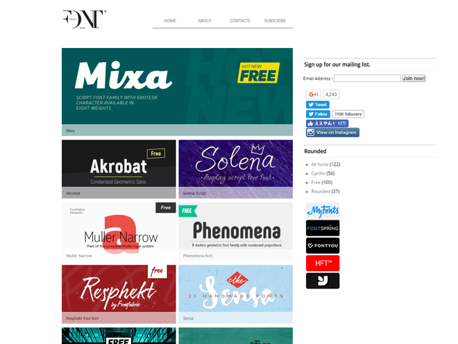 海外のホームページですが、使い勝手の良いフリーフォントが多く紹介されています。
