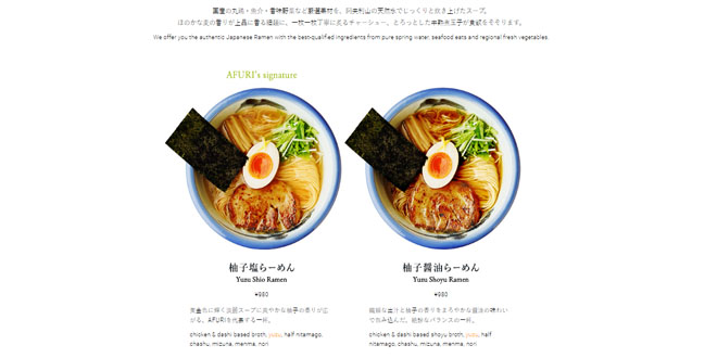 ターゲットは女性!ラーメン屋さんの洗練されたホームページ
