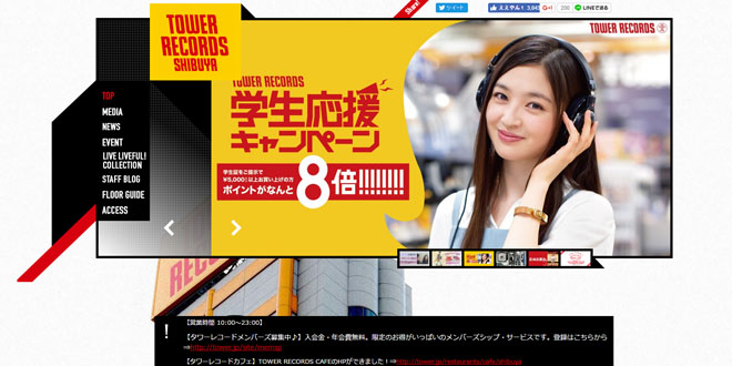 スタイリッシュなデザイン!渋谷タワーレコードのホームページ!