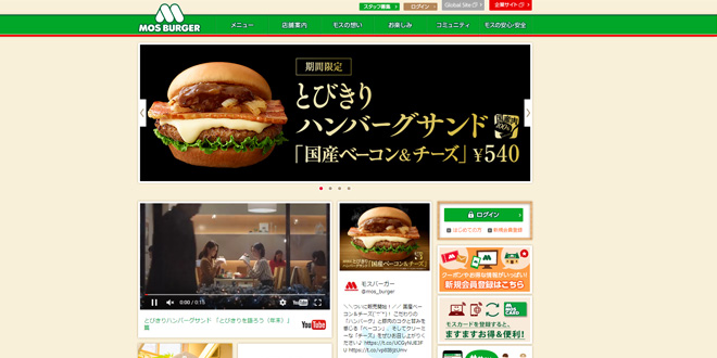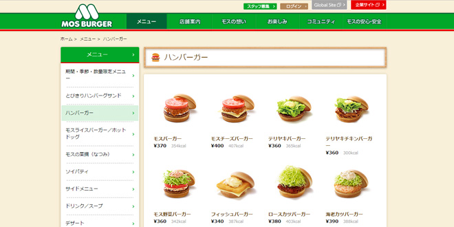 というわけで見出しの通り、今回はハンバーガーショップのホームページを比較してみたいと思います。