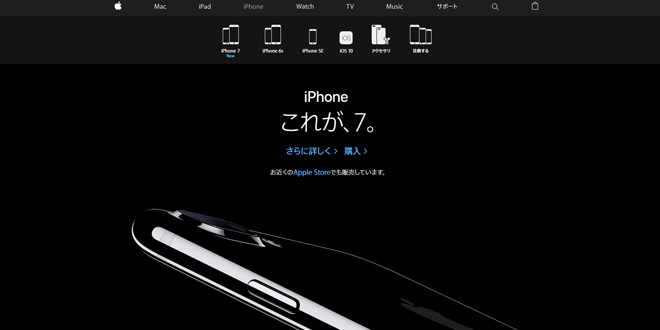 iPhoneのサイトはAndroidとは逆に、メインイメージが黒で高級感が感じられます。