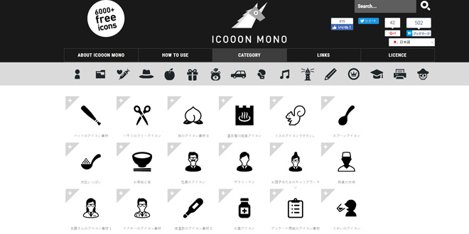 そんな時ここのサイトは、かなりの種類のモノトーンアイコンがカテゴリ別にわけられているのでとっても便利です!