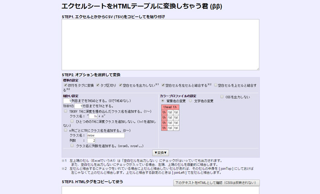 エクセルシートをHTMLテーブルに変換しちゃう君 (ββ)という、そのまんまな名前のこのツール。