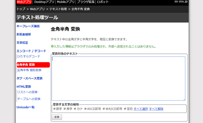 このツールを利用すると、一瞬ですべてを全角、もしくは半角に変換してくれます!