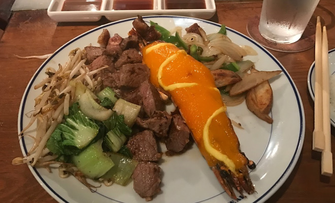 もちろん鉄板のパフォーマンスもさる事ながらメインのお肉も柔らかくておいしかったですよー。