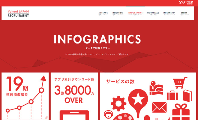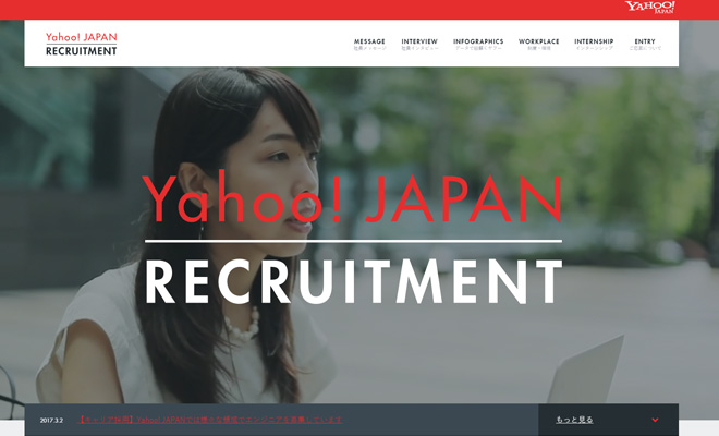 ヤフーは企業カラーの赤を全面に使用したサイトとなっています。