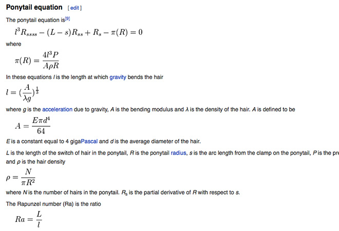 イギリスでは、もう一人の教授Raymond E. Goldstein氏もポニーテールについて研究を発表しました。彼の着目点は『動き』でなく『形』でした。長いポニーテール、ストレートなポニーテール、高いポニーテール……確かに、現実には様々なポニーテールが存在しています。そしてポニーテールの形を決めるのは本人意思以外、物理の条件・制限も多くあります。髪の毛の長さ、多さ、パーマかけているか、髪質の硬さ、髪を固定する道具の違い、髪の弾力など、大変複雑な質問ですね。彼はポニーテールを構成するための要素を、3種類のエネルギーに分けました。まず『弾力』、『重力』と『その他のエネルギー』を設定して、その後集計と力学でポニーテールの安定状態を探し、つもり静止状態の『形』が分かるようになります。計算式は複雑しすぎて現実に応用することは難しいですが、挑戦してみたい読者さんはぜひこちらへ: