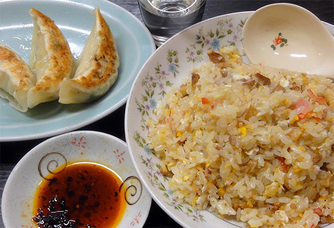 その日は一人だったので、チャーハンと餃子を食べました!!