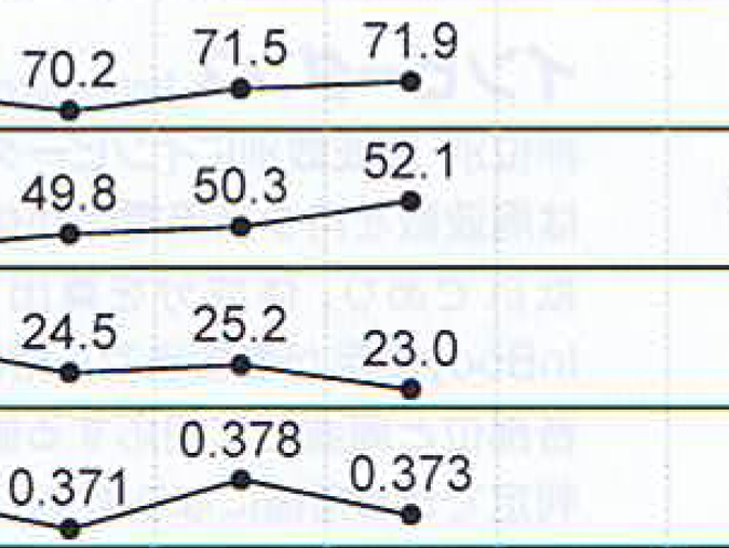 ※上から順に、体重(kg)、筋肉量(kg)、体脂肪率(%)、細胞外水分比の値です。