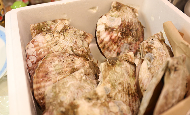 メイン食材として召喚されたホタテ。みちゃきちゃんが全部さばきました。