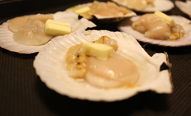 刺し身でも食べましたが焼きホタテの方にはバター醤油をのせました!