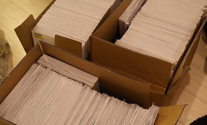 これを社員だけでやると1週間残業しないと発送までこぎつけないのですが