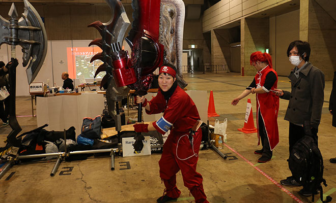 スタッフに聞いてみると、あの大剣5kgぐらいあるんだとか。そら重いわ。
