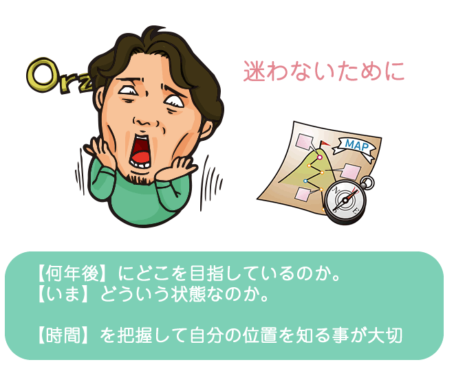 「いつ」という時間を見据える。「活動維持・発展・利益」この当たりの現状と未来を明確に把握する事が大切です。