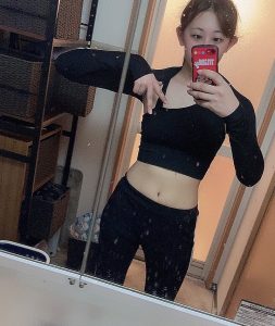 走った後の私(会社のお風呂借りてシャワー浴びる前)↓