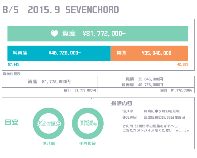 んじゃ、次はB/Sも発表しちゃおう。 今後はもっと細かい数字を出せればなと。整理できたけど、まだまだ社員には共有しきれていないから社内通知を兼ねた公開で、ウチのためにもなる記事だと思うんだよね。