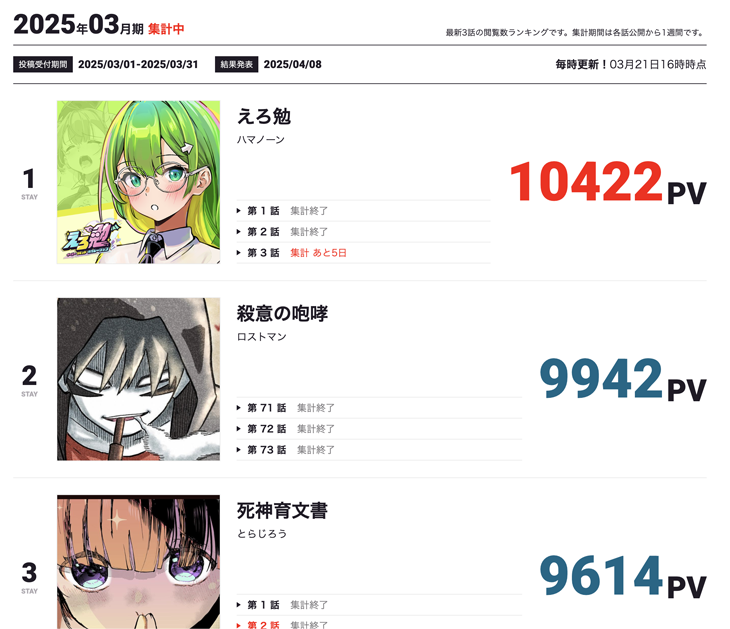 今月に公開した漫画ですが、ななななな、なんと!!!! 現在、ジャンプ+の連載争奪ランキングで、1位です!!!! もしかして、ワシ、ジャンプ作家になれちゃう??