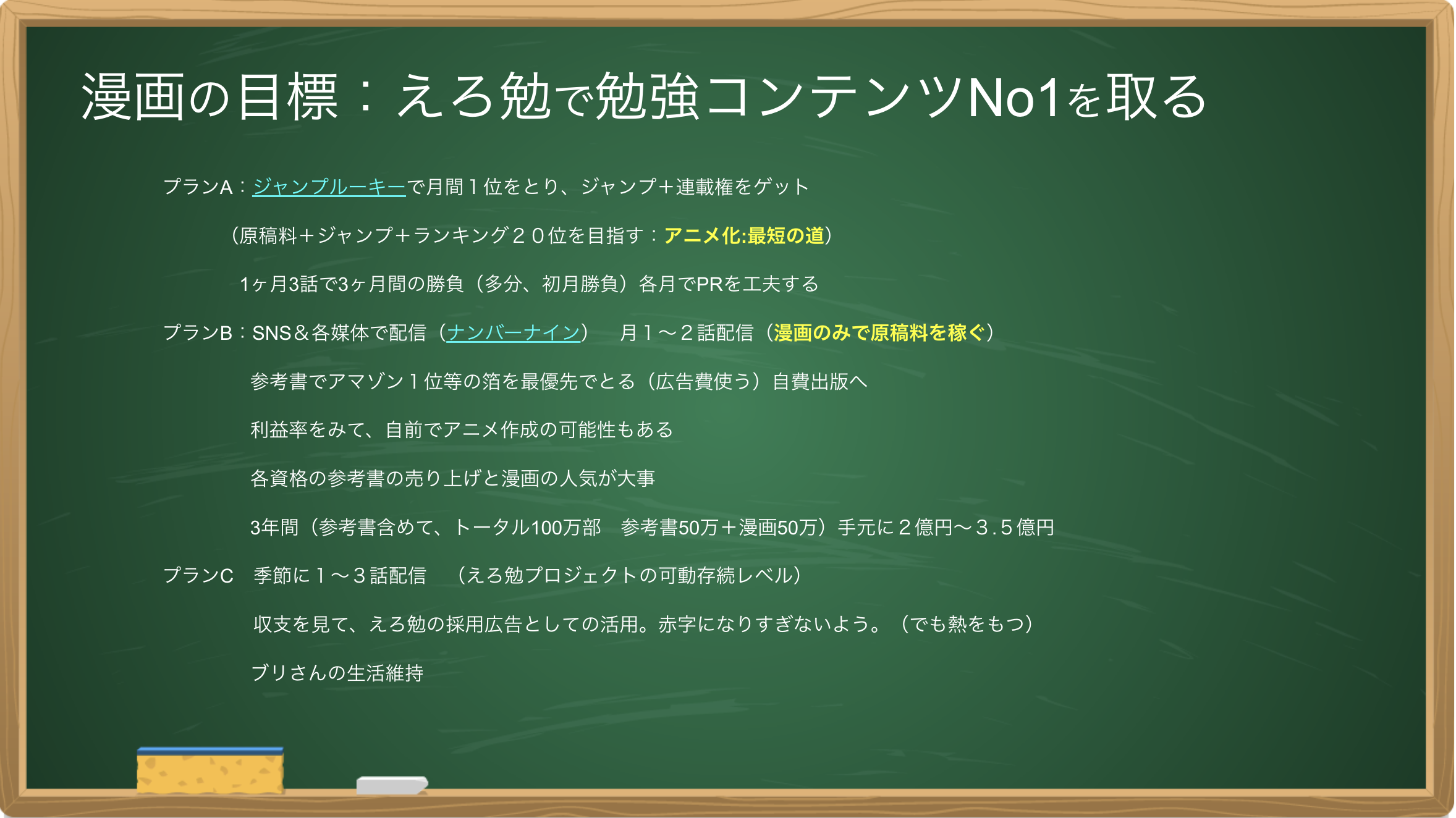 正直、ジャンプルーキーにアップする前も、どうせBANされるんだろうな。でも、ダメもとでやってみるかという気持ちでアップしました。はじめは不適切評伝でBANされましたが、ムフフなシーンを修正したら、ランキングにもエントリーできました。「これ、行けるかも!」と期待した分、ガッカリはしましたが、それでも、漫画を消さずに残してくれてるジャンプルーキーには感謝しています。おかげで、応援スタンプもコメントもたくさんいただきまして、次のプランBに自信を持って勧められます。