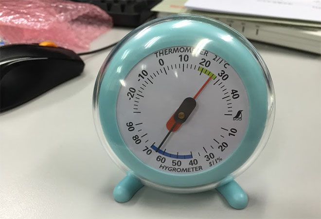 なんと机の上には室温を測るための温度計もスタンバイ済みです。万全のコンディションにて業務に挑みたいという意思の現れだと思います。空調。大事。うん。徹底ぶりが素敵です☆*:.。. o(≧▽≦)o .。.:*☆