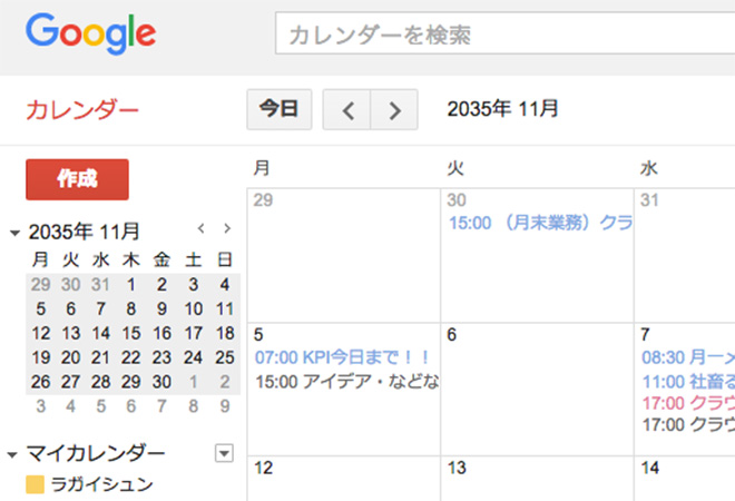 一般市販のカレンダーだと、一年ぐらいしか記載していません。《コス★ちゅ!》2016カレンダーも同じく、2016年1月1日~2016年12月31日の期間にしかありません。一方、Googleカレンダーは買い換える必要がなく、2020年でも、2030年でも、ずっと一生使えるほど長いカレンダーです。想像してみてください。もしお宅に交換必要のない、無限長のトイレペーパーがあれば、これ以上便利なものはあると思いますか。