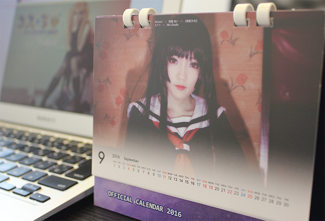 《コス★ちゅ!》の2016カレンダーは、公式ブログで登場したコスプレイヤーさんたちの写真をたくさん載せています!Vol. 08のMeiMeiさんやVol. 32のNessaroseさんをはじめ、大勢の人気コスプレイヤーが出演してくれました。インタービュー以外の形で続けて海外のコスプレ文化をプロモします。海外プロジェクトはまだメイン業務ではないので、予算が少なく大量印刷はできませんでした。