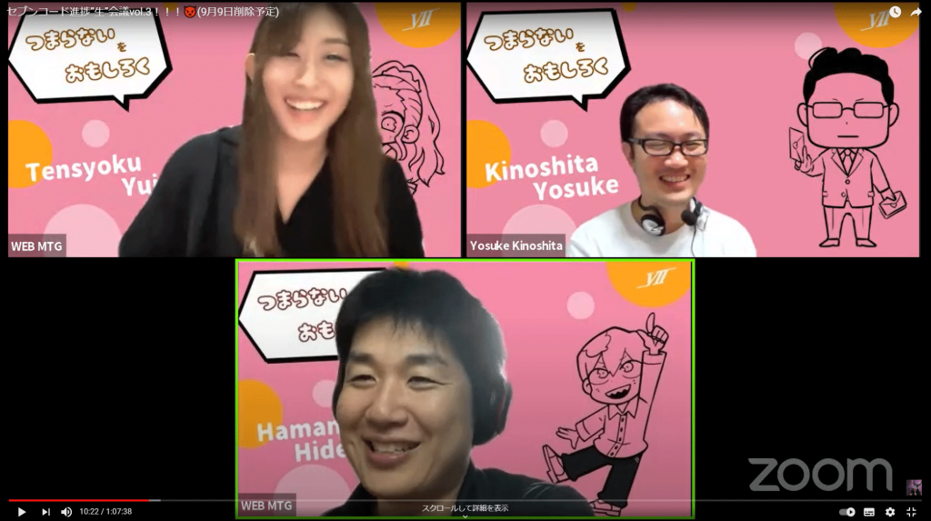 さて、ここ最近は毎週月曜にラジオ的なゆるい感じで、ハマノーン(社長)と人事部のゆいちゃんと僕の3人でyoutube配信をしながら各自の進捗報告会をしています。