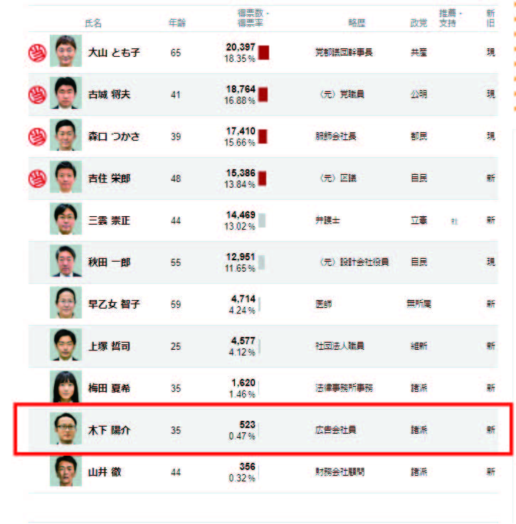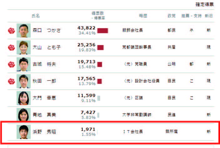 偶然、代表のハマノーンも前回の新宿区都議選に出ていましたが、その時はドベで1971票。